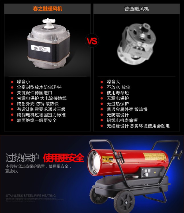 配有过热保护装置,冬季加热,取暖,热风,烘干